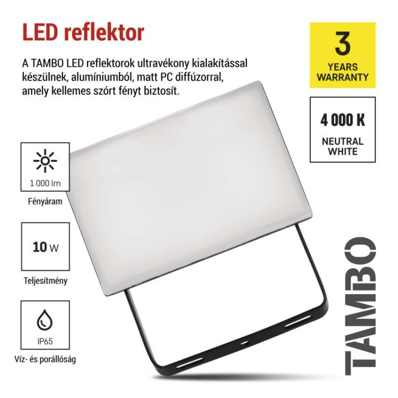 LED-es reflektor TAMBO, 10 W, 1000 lm, IP65, fekete