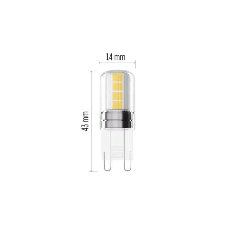 chipek száma: –|chipek típusa: SMD|dimmelhető: nem|élettartam: 30 000 óra|energiaosztály: D|értékesítési csomagolás: 1 db, kis doboz|értesítések a mobilalkalmazáshoz: –|fényáram: 350 lm|fényhasznosítás: 140 lm/W|fény színe: hideg fehér|feszültség: 220-240 V~|foglalat: G9|fogyasztás: 2,5 W|forma: JC|frekvencia: 50/60 Hz|garancia-időszak: 3 év|hangalapú asszisztensek általi vezérlés: –|helyettesítő: 32 W|jelátviteli frekvencia: –|kapcsolási ciklusok száma: 25 000|kompatibilitás: –|méretek: 14 × 14 × 43 mm|protokoll: –|sorozat: CLASSIC|sugárzási szög: 300°|színhőmérséklet: 6 500 K|színvisszaadási index (CRI): Ra >80|támogatott OS: –|technológia: LED|teljesítménytényező: 0,40