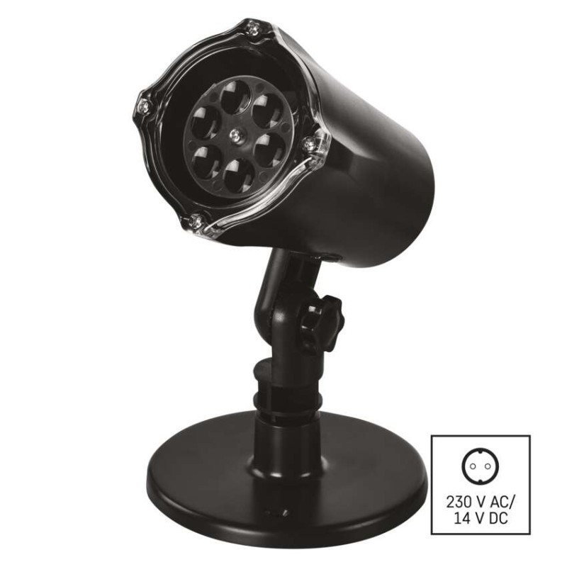 anyag: műanyag|bemeneti feszültség: 230 V~|élettartam: 10 000 óra|értékesítési csomagolás: 1 db, doboz|fény színe: hideg fehér|fogyasztás: 3,6 W|funkció: forgó fény|garancia-időszak: 2 év|használat: kültéri és beltéri|időzítő: nem|kimeneti feszültség: 12 V DC|minta: hópelyhek|tápellátás típusa: AC (hálózati) adapter|tápvezeték hossza: 3 m|távvezérlő: nem|technológia: LED|termék: projektor|védettség: IP44