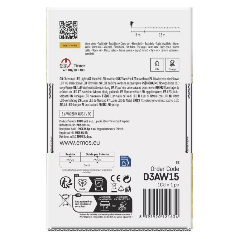 a fa magasságához: nincs megadva|anyag: PVC|bemeneti feszültség: 230 V AC|csatlakoztatási lehetőség: nem|élettartam: 10 000 óra|értékesítési csomagolás: 1 db, doboz|fény színe: meleg fehér|fogyasztás: 3,6 W|forma: drop|funkció: világít|garancia-időszak: 2 év|használat: kültéri és beltéri|időzítő: igen|kábel színe: átlátszó|kimeneti feszültség: 31 V DC|LED-ek közötti távolság: nincs megadva|LED-ek száma: 120|LED mérete: nincs megadva|méretek: 12 m|tápellátás típusa: AC (hálózati) adapter|tápvezeték hossza: 5 m|távvezérlő: nem|termék: lánc|védettség: IP44