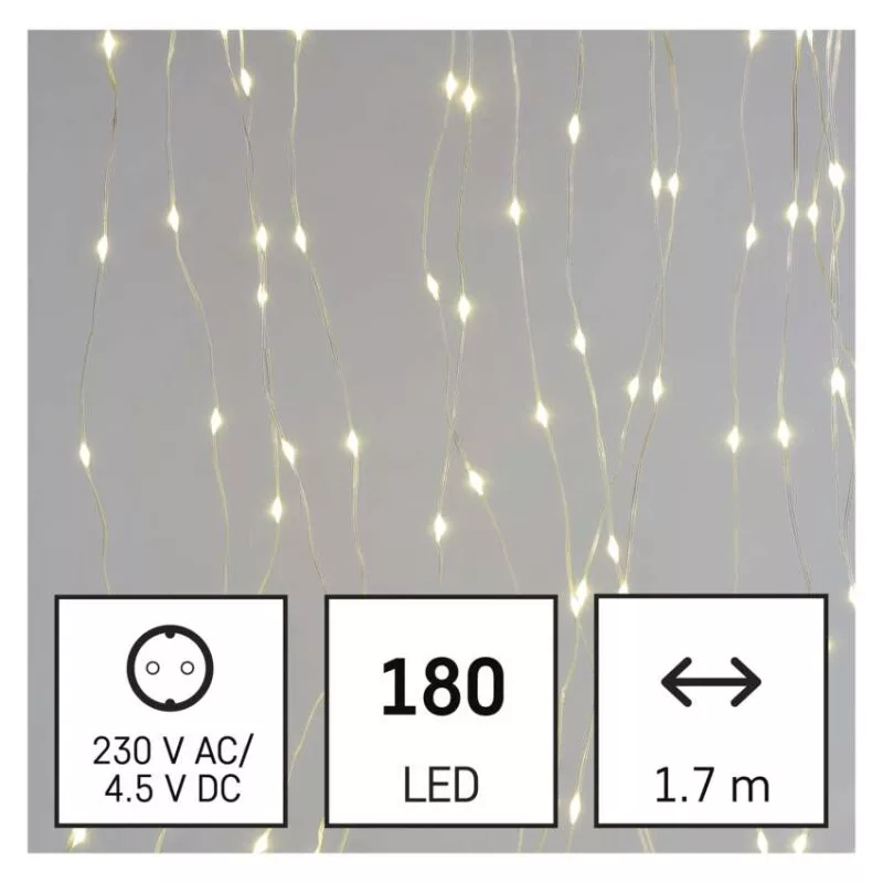 a fa magasságához: nincs megadva|alkalmazási nyelvek: –|anyag: #|bemeneti feszültség: 230 V AC|csatlakoztatási lehetőség: nem|egyéb funkciók: –|élettartam: 10 000 óra|értékesítési csomagolás: 1 db, doboz|értesítések a mobilalkalmazáshoz: #|fény színe: meleg fehér|fogyasztás: 2,7 W|forma: drop|funkció: 8 üzemmód (multifunkcionális)|garancia-időszak: 2 év|hangalapú asszisztensek általi vezérlés: #|használat: kültéri és beltéri|időzítő: igen|jelátviteli frekvencia: –|kábel színe: átlátszó|kimeneti feszültség: 4,5 V DC|kompatibilitás: –|LED-ek közötti távolság: nincs megadva|LED-ek száma: 180|LED mérete: nincs megadva|méretek: 1,7 × 1,5 m|protokoll: –|támogatott OS: –|tápellátás típusa: AC (hálózati) adapter|tápvezeték hossza: 3 m|távvezérlő: nem|termék: függöny|védettség: IP44