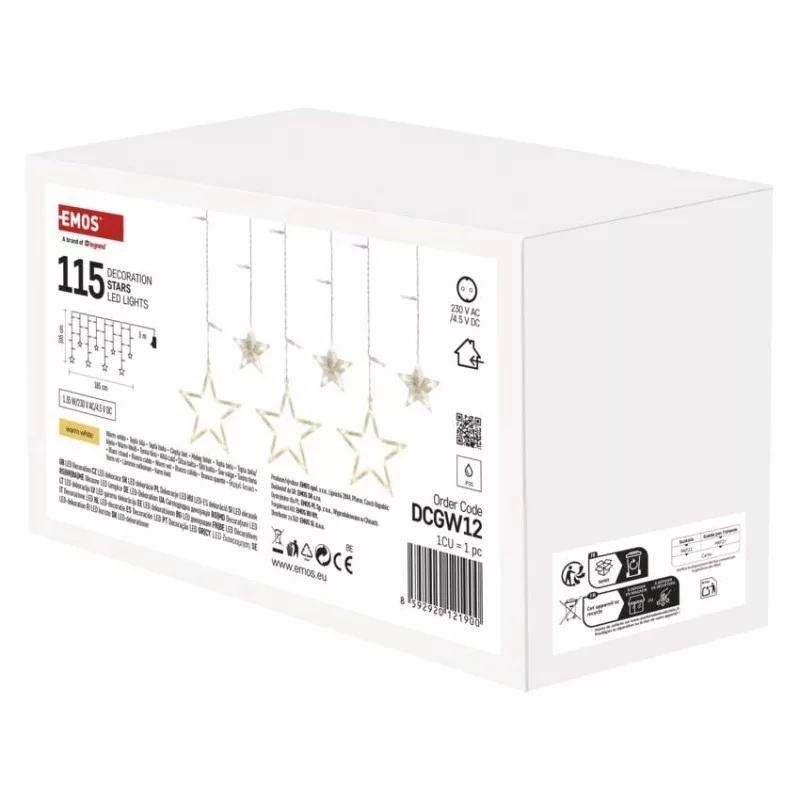 LED karácsonyi fényfüggöny – csillagok, 185x105 cm, beltéri, meleg fehér