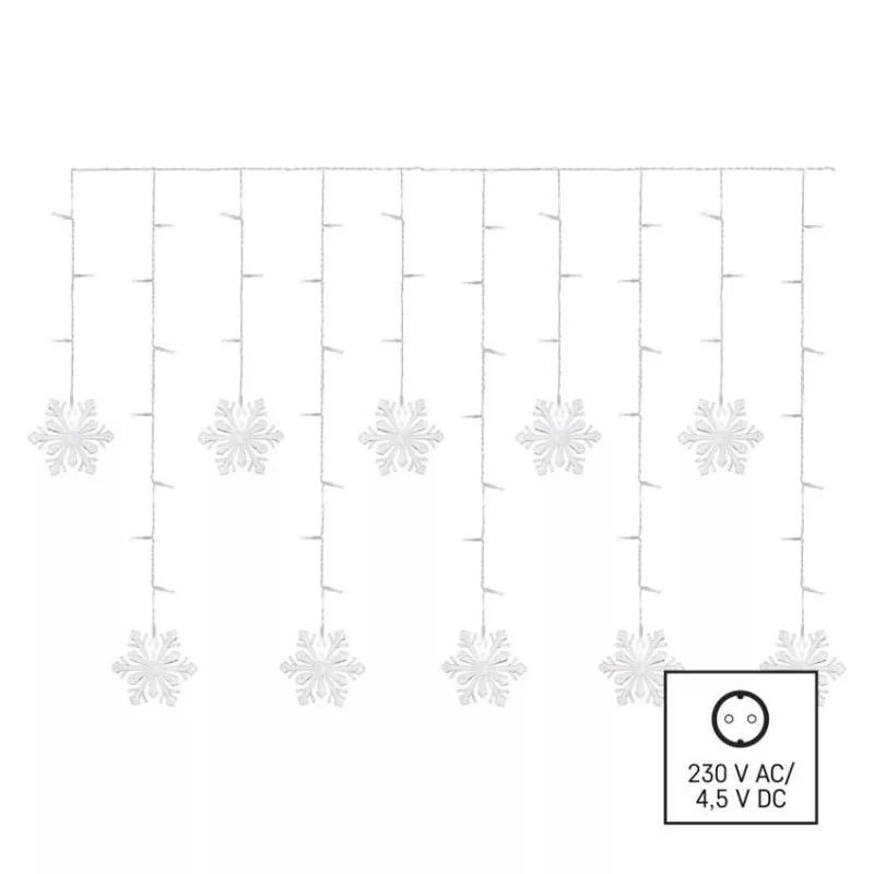 LED karácsonyi fényfüggöny – hópelyhek, 135x50 cm, beltéri, hideg fehér