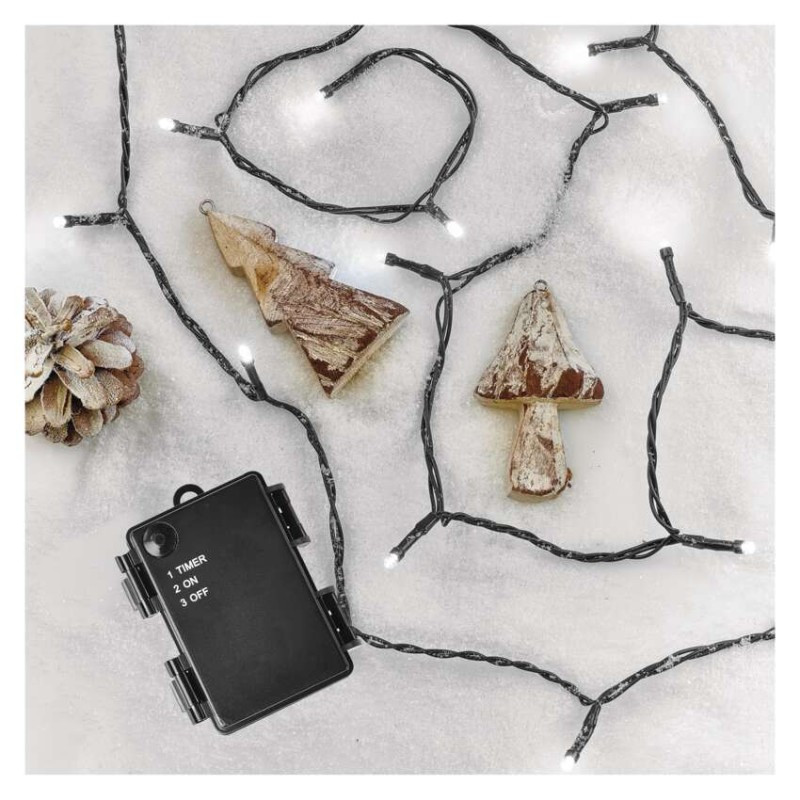 LED karácsonyi fényfüzér, 5,6 m, 3x AA, kültéri és beltéri, hideg fehér, időzítő