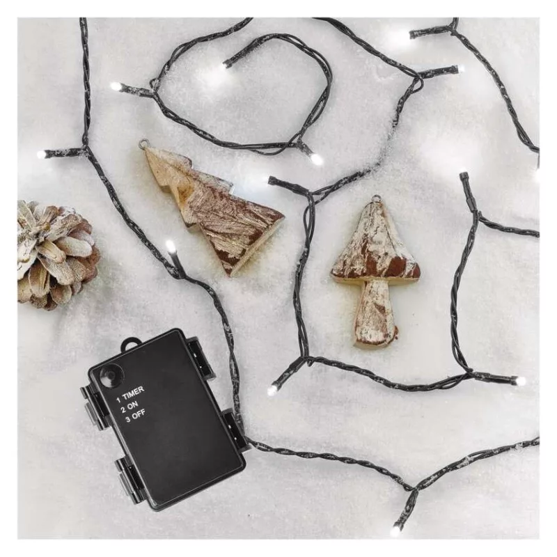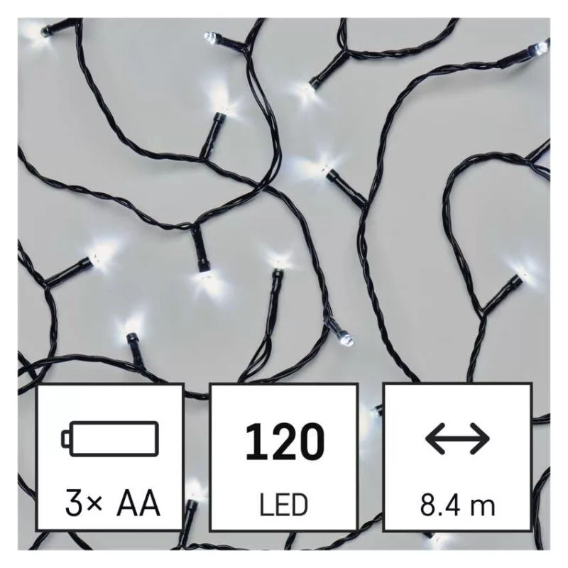 LED karácsonyi fényfüzér, 8,4 m, 3x AA, kültéri és beltéri, hideg fehér, időzítő