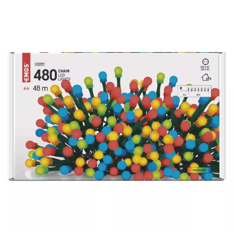 LED karácsonyi fényfüzér, cseresznye – golyók, 48 m, kültéri és beltéri, többszínű, időz.