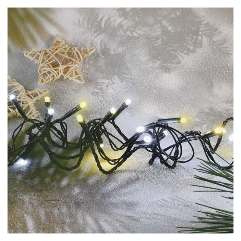 LED karácsonyi fényfüzér, villogó, 8 m, kültéri és beltéri, meleg/hideg fehér, időzítő