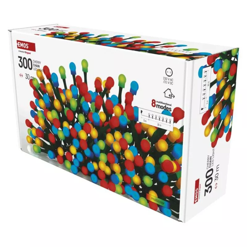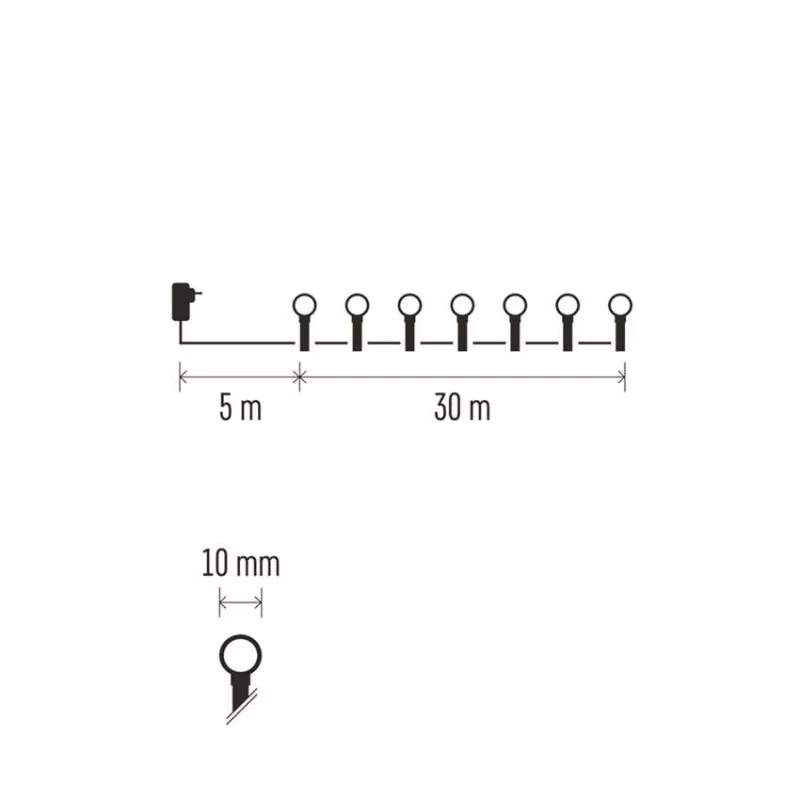 LED karácsonyi fényfüzér,cseresznye–golyók, 30 m, kültéri és beltéri, többszínű,progr,időz