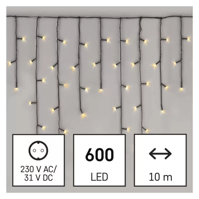 a fa magasságához: nincs megadva|alkalmazási nyelvek: #|anyag: PVC|bemeneti feszültség: 230 V AC|csatlakoztatási lehetőség: nem|egyéb funkciók: #|élettartam: 10 000 óra|értékesítési csomagolás: 1 db, doboz|értesítések a mobilalkalmazáshoz: #|fény színe: meleg fehér|fogyasztás: 9 W|forma: klasszikus|funkció: 8 üzemmód (multifunkcionális)|garancia-időszak: 2 év|hangalapú asszisztensek általi vezérlés: #|használat: kültéri és beltéri|időzítő: nem|jelátviteli frekvencia: #|kábel színe: zöld|kimeneti feszültség: 31 V DC|kompatibilitás: #|LED-ek közötti távolság: 10 cm|LED-ek száma: 600|LED mérete: 5 mm|méretek: 10 × 0,7 m|protokoll: #|támogatott OS: #|tápellátás típusa: AC (hálózati) adapter|tápvezeték hossza: 5 m|távvezérlő: nem|termék: jégcsap|védettség: IP44