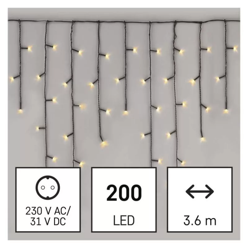 a fa magasságához: nincs megadva|alkalmazási nyelvek: –|anyag: PVC|bemeneti feszültség: 230 V AC|csatlakoztatási lehetőség: nem|egyéb funkciók: –|élettartam: 10 000 óra|értékesítési csomagolás: 1 db, doboz|értesítések a mobilalkalmazáshoz: –|fény színe: meleg fehér|fogyasztás: 3,6 W|forma: klasszikus|funkció: 8 üzemmód (multifunkcionális)|garancia-időszak: 2 év|hangalapú asszisztensek általi vezérlés: –|használat: kültéri és beltéri|időzítő: nem|jelátviteli frekvencia: –|kábel színe: zöld|kimeneti feszültség: 31 V DC|kompatibilitás: –|LED-ek közötti távolság: 10 cm|LED-ek száma: 200|LED mérete: 5 mm|méretek: 3,6 × 0,7 m|protokoll: –|támogatott OS: –|tápellátás típusa: AC (hálózati) adapter|tápvezeték hossza: 5 m|távvezérlő: nem|termék: jégcsap|védettség: IP44