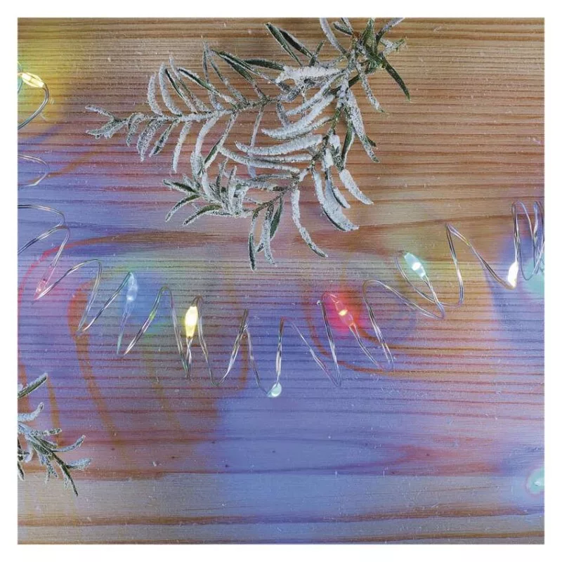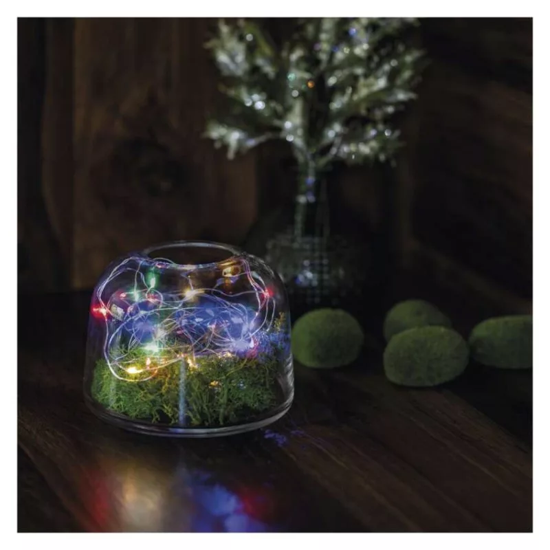 LED karácsonyi nano fényfüzér, 1,9 m, 2x AA, beltéri, többszínű, időzítő