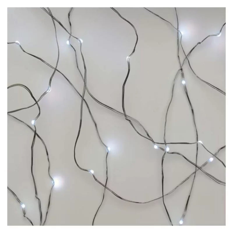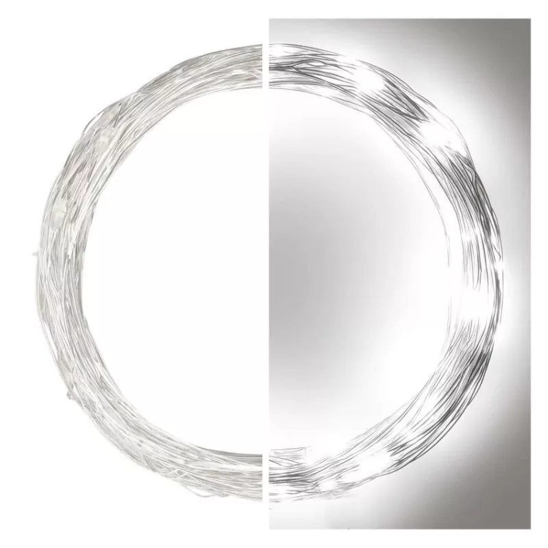 LED karácsonyi nano fényfüzér, ezüst, 10 m, kültéri és beltéri, hideg fehér, időzítő