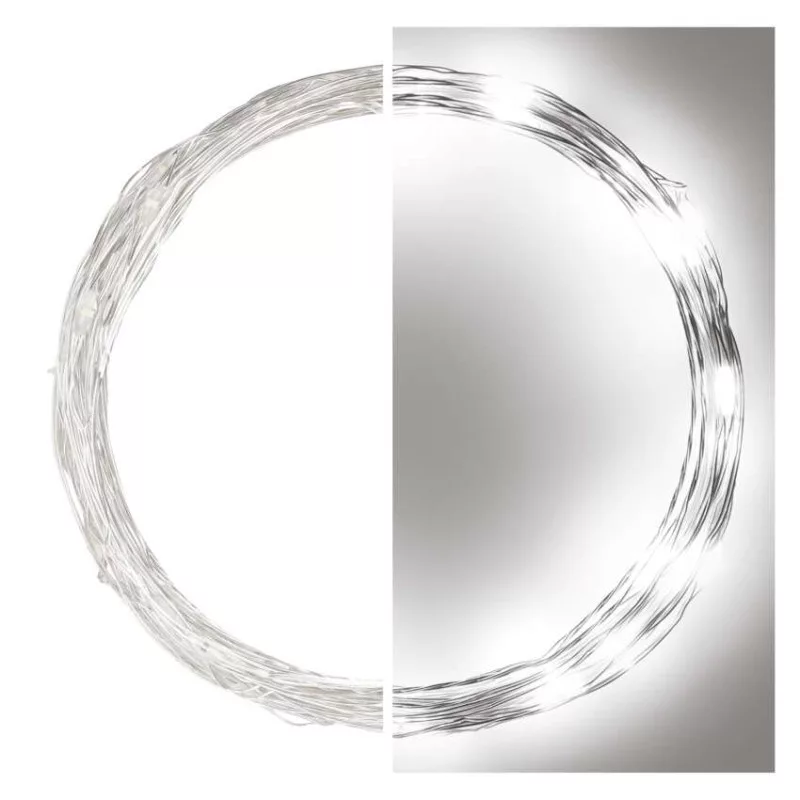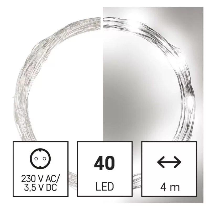LED karácsonyi nano fényfüzér, ezüst, 4 m, kültéri és beltéri, hideg fehér, időzítő