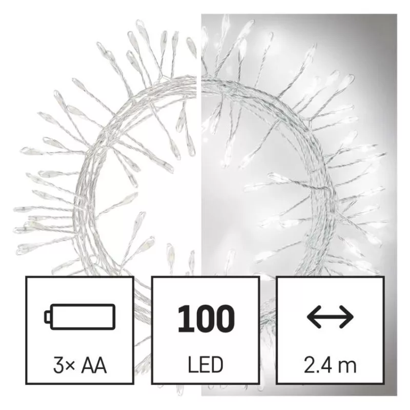 a fa magasságához: nincs megadva|anyag: fém|bemeneti feszültség: nincs megadva|csatlakoztatási lehetőség: nem|élettartam: 10 000 óra|értékesítési csomagolás: 1 db, doboz|fény színe: hideg fehér|fogyasztás: 0,9 W|forma: nano|funkció: világít|garancia-időszak: 2 év|használat: beltéri|időzítő: igen|kábel színe: ezüst|kimeneti feszültség: 4,5 V DC|LED-ek közötti távolság: 2,4 cm|LED-ek száma: 100|LED mérete: 3 mm (nano)|méretek: 2,4 m|tápellátás típusa: elem 3× AA (nem a csomag része)|tápvezeték hossza: 0,3 m|távvezérlő: nem|termék: sündisznó|védettség: IP20