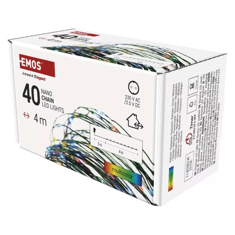 a fa magasságához: 100 cm|anyag: fém|bemeneti feszültség: 230 V AC|csatlakoztatási lehetőség: nem|élettartam: 10 000 óra|értékesítési csomagolás: 1 db, doboz|fény színe: multicolor|fogyasztás: 2,1 W|forma: nano|funkció: világít|garancia-időszak: 2 év|használat: kültéri és beltéri|időzítő: igen|kábel színe: zöld|kimeneti feszültség: 3,5 V DC|LED-ek közötti távolság: 10 cm|LED-ek száma: 40|LED mérete: 3 mm (nano)|méretek: 4 m|tápellátás típusa: AC (hálózati) adapter|tápvezeték hossza: 5 m|távvezérlő: nem|termék: nano lánc|védettség: IP44