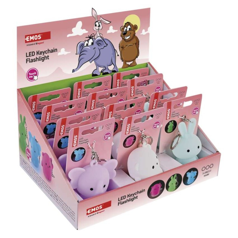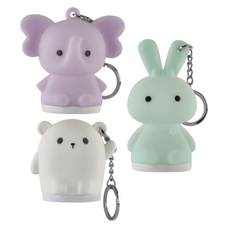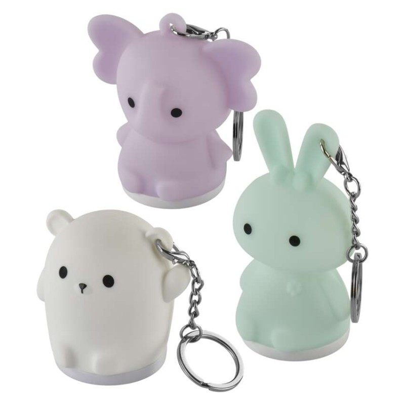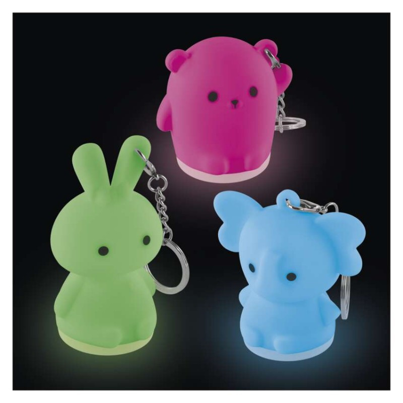LED szilikon kulcstartó – állatkák, 12 db, display box