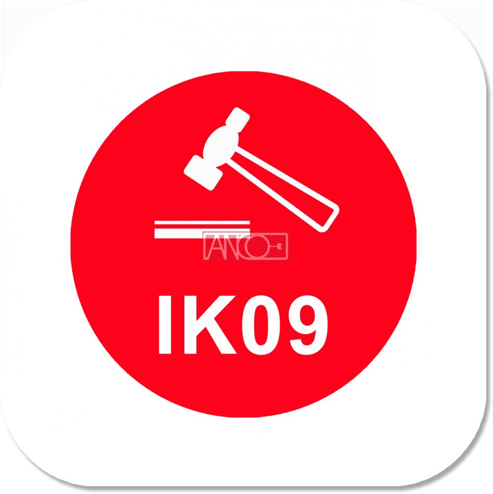 - ütésálló házburkolat, IK10: ez a hatás egyenértékű azzal ha egy 5 kg súlyú tömeg leesik 400 mm-ről a felületre