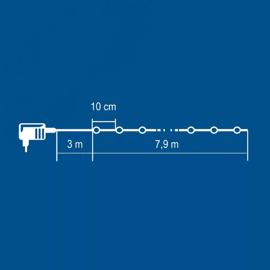 A 7,9 méter hosszú fényfüzér 80 darab melegfehér, ragyogó micro LED-et tartalmaz, amelyek gyönyörű, állandó fényükkel feldobják bármelyik helyiséget vagy kertet. A vékony, diszkrét vezeték lehetővé teszi, hogy a fények szinte lebegjenek a térben, ezáltal minden dekorációhoz tökéletesen illeszkedik. A tápellátást biztosító IP44 kültéri hálózati adapter garantálja, hogy a fényfüzér ellenálljon az időjárás viszontagságainak, így bátran használhatja a szabadban is.
