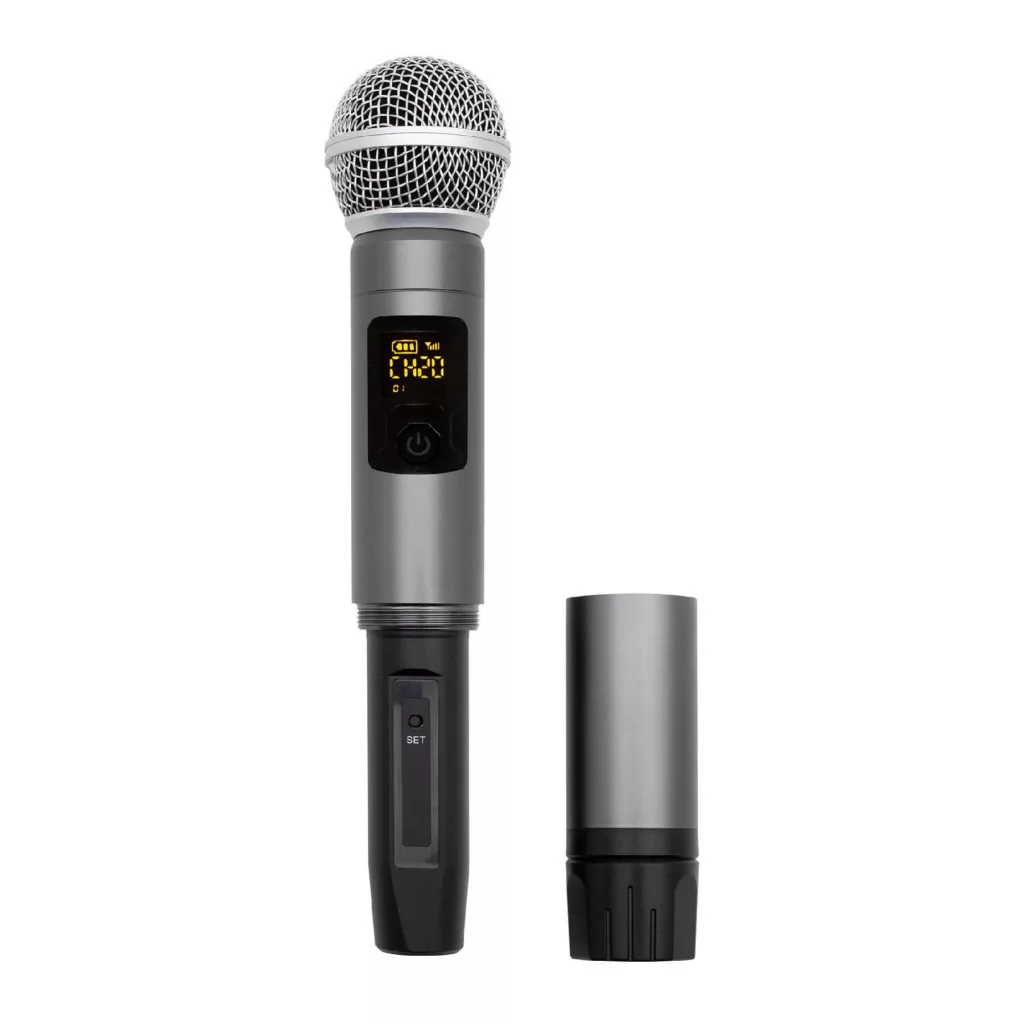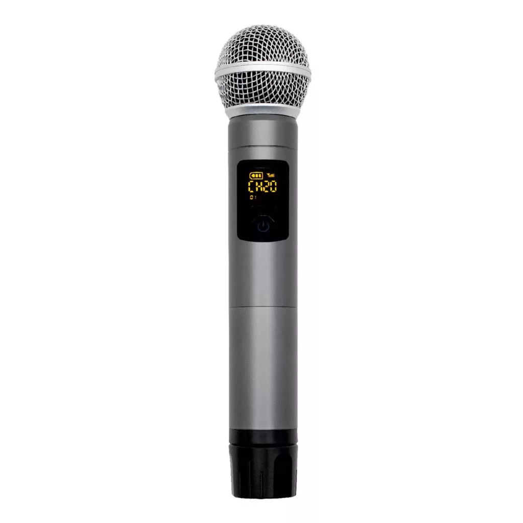 A mikrofon masszív fémháza strapabíró és kényelmes fogást biztosít. A markolaton található multifunkciós digitális kijelző megjeleníti a frekvenciát, a csatornát és az elem állapotát, így minden fontos információ egy pillantással elérhető. Az automatikus párosítás gyors és egyszerű kapcsolatot biztosít a mikrofon és a vevőegység között. A vevőegység közvetlenül az erősítőbe csatlakoztatható a beépített Ø6,3 mm-es dugó segítségével.