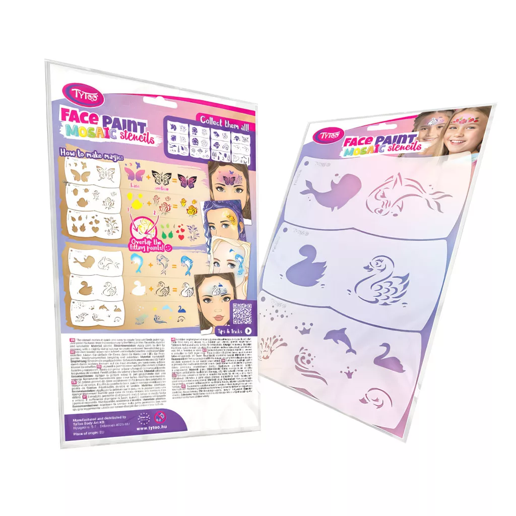 Hatalmas öröm a gyerekeknek egy arcfestés, amit a TyToo Mosaic sablonokkal, rajztudás nélkül Ön is elkészíthet otthon. A TyToo Mosaic sablonja segítségével könnyedén festheti meg, az Ön által kiválasztott mintát. A sablon formája úgy van kialakítva, hogy tökéletesen illeszkedjen egy kisgyerek arcára, és könnyen kezelhető legyen, így a használata is rendkívül kényelmes. A minták részét képező illesztési pontok megkönnyítik a minták pontos egymásra helyezését, el is veheti és ugyan oda vissza is teheti festés közben.