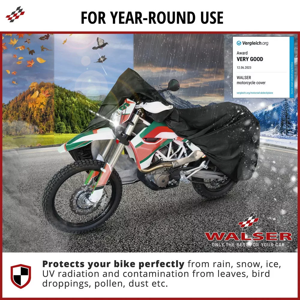 Motortakaró ponyva PREMIUM - ENDURO - XL méret - 255x110x135 cm fekete - WALSER