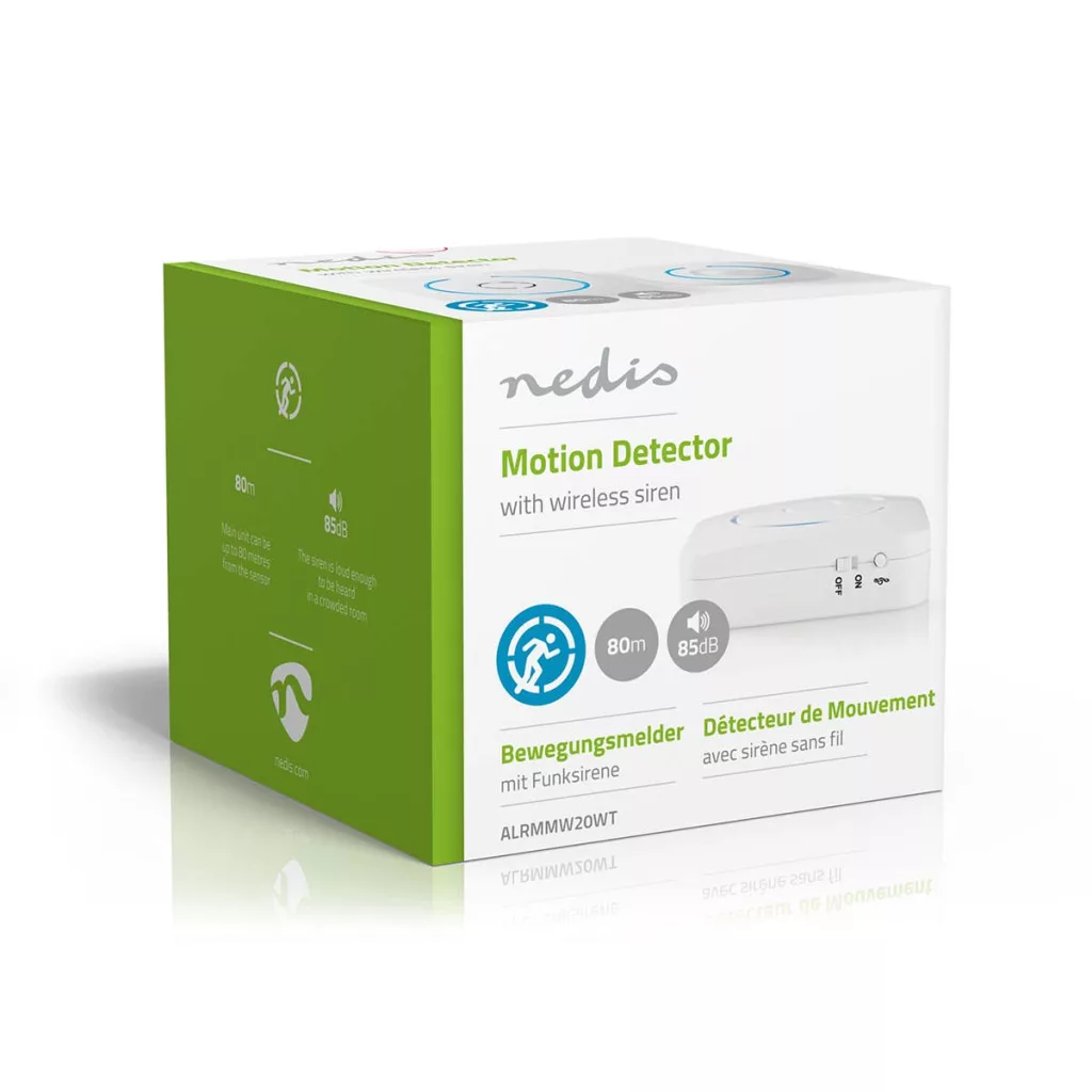 Ez a infravörös mozgásérzékelő vezeték nélkül egy szirénához csatlakozik, így Ön mindig tudni fogja, ha valaki közeledik.A PIR mozgásérzékelő a maximálisan rugalmas elhelyezés érdekében elemmel működtethető. Kiterjedt érzékelési tartományának köszönhetően nagy területen teszi lehetővé a mozgás megfigyelését.A sziréna vezeték nélkül képes kommunikálni az érzékelőtől akár 80 méteres távolságból.