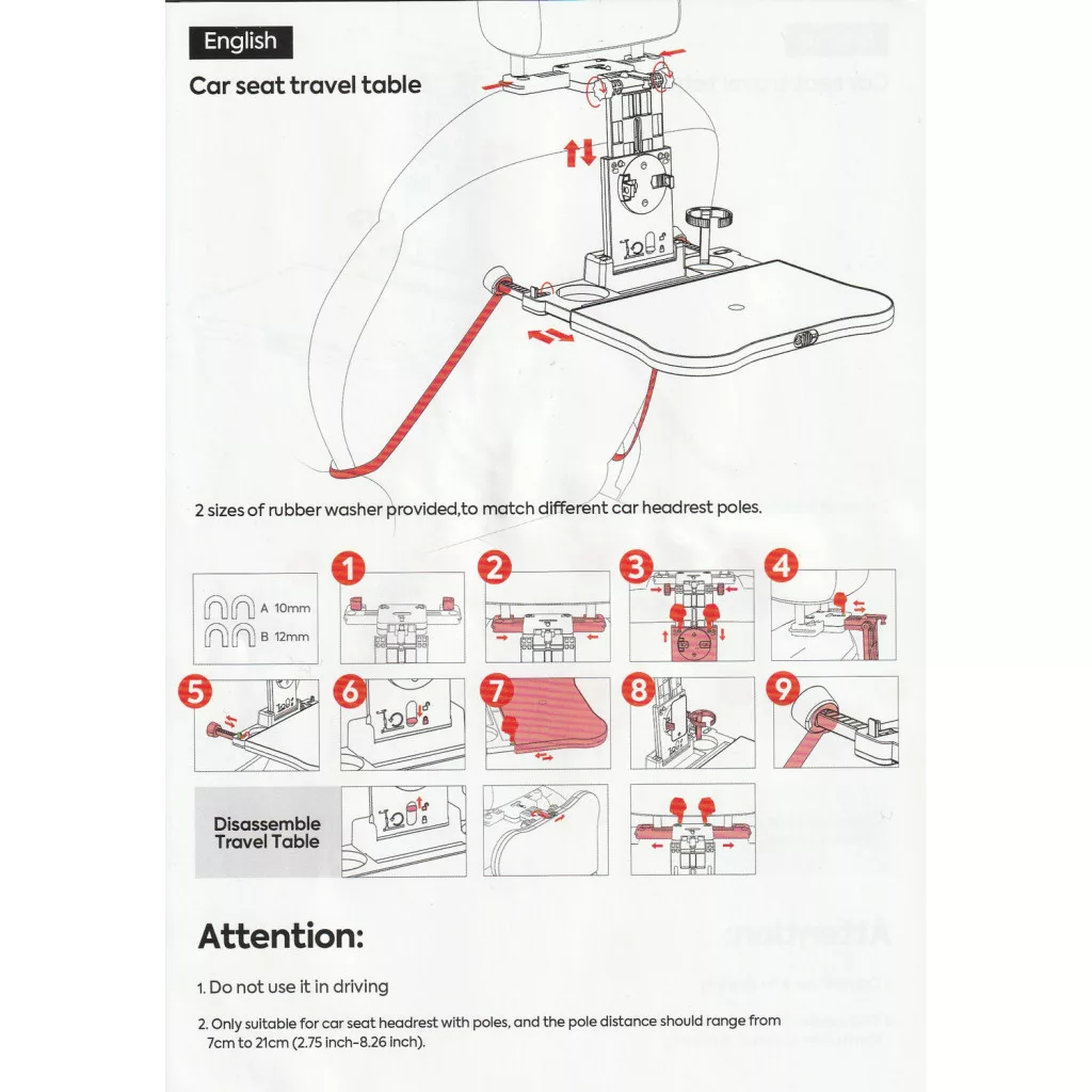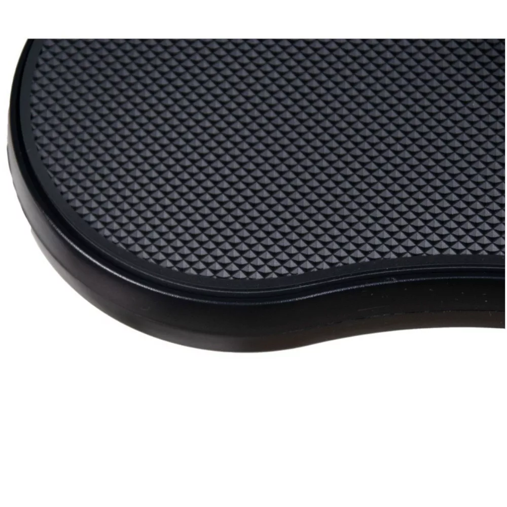 Négyszögletes tartás, stabil és nem borul fel. Két forgatható támasztólábbal rendelkezik. Jobb és stabilabb rögzítés az autós asztalnál használat közben. Biztonság, hogy ne károsítsa az autót. Tartalmaz egy csúszásmentes gumiszőnyeget, amely megvédi a tárgyakat a csúszástól. Ez a szőnyeg nincs a tálcához ragasztva, ezáltal könnyen eltávolítható tisztításhoz, vízzel történő mosáshoz. Drasztikusan egyenetlen utakon való közlekedéskor fordítson nagyobb figyelmet a tálcán elhelyezett tárgyak megfelelő rögzítésére!