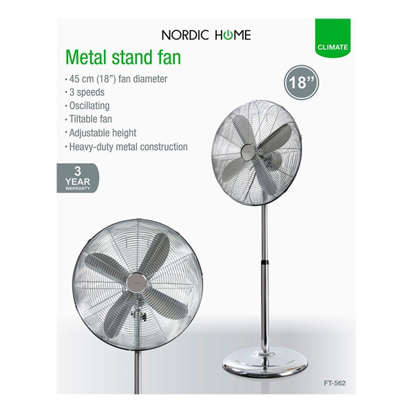 NORDIC HOME FT-562 fém állóventilátor, 3 év garancia, erős stabil kivitel, átmérő: 45 cm, teljesítmény: 60W, 3 fokozat