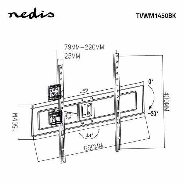 Nedis TVWM1450BK LCD TV / monitor tartó konzol 3d, minden irányban mozgatható, súly: 35 kg, dönthető, forgatható