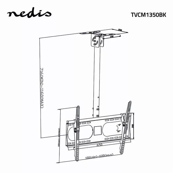 Nedis TVCM1350BK mennyezeti (plafonra szerelhető) TV / monitor állvány/tartó konzol, 42-65", dönthető, forgatható, 45kg