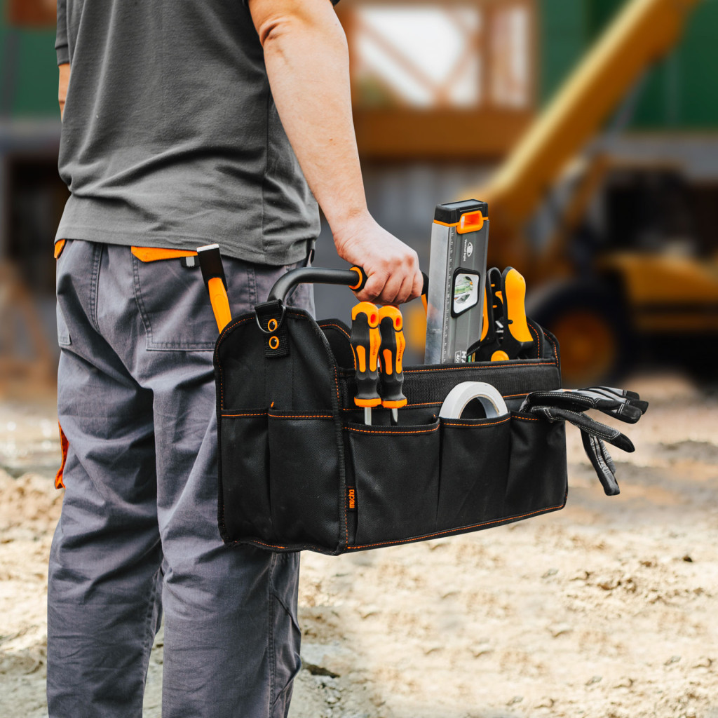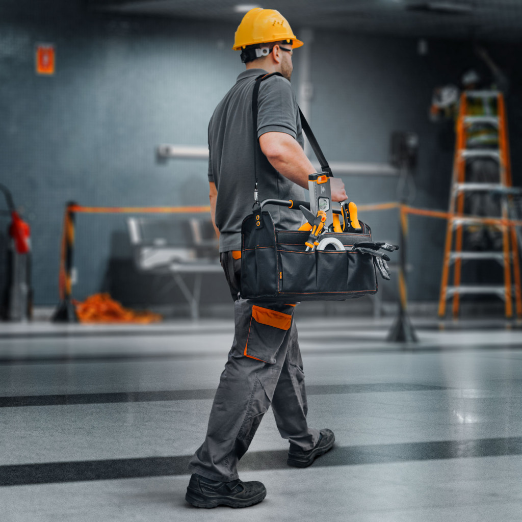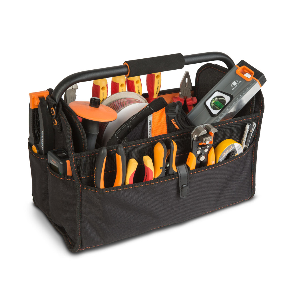 A Handy szerszámos táskák új generációja megérkezett! Merevfalú, fémvázzal rendelkező kivitel, amely extra strapabíró, vastag anyagból készült. A táska áttekinthető beltartalmáról számos tárolózseb és szerszámtartó pánt gondoskodik. A nagy teherbírását, vastag varrásoknak, a szivacsozott fém fogantyúnak és a szegecselt akasztókampónak köszönheti.