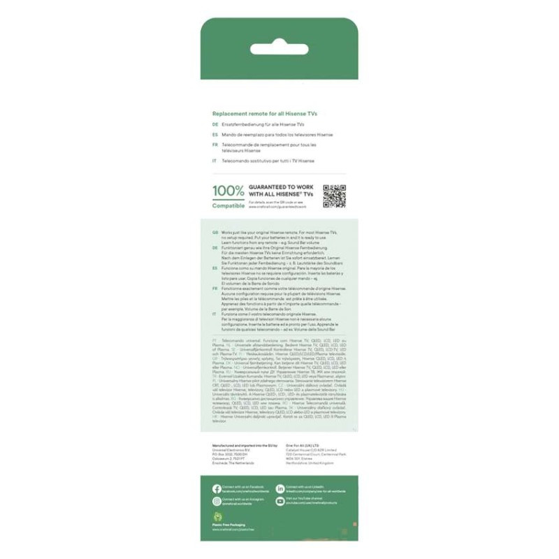 a következő termékekhez tervezett: TV Hisense|a lehetséges vezérelt készülékek száma: 1|az összes márka támogatott: nincs megadva|beállítás és frissítés a www.simpleset.com oldalon keresztül: nincs megadva|egyszeri (Simple set) beállítások: nem|elem a távirányítóba (tartozék): nem|előreprogramozott kódok: igen|értékesítési csomagolás: 1 db, kis papír doboz|gyors hozzáférést biztosít kedvenc alkalmazásához: igen|hangerő zár: nem|hatótávolság: 15 m|háttérvilágítású billentyűzet: nem|készülék közvetlen kiválasztása: nem|kód keresés: kód utánállítása az adott HISENSE sorozathoz|kód megjegyzése az elem eltávolítása után: igen|kombi vezérlésmód: nem|közvetlen kód beállítás: nem|makró funkció: nem|méretek: 19 × 45 × 230 mm|modell sorozat: speciális TV|súly: 80 g|szerviz frissítés: igen|tanulási funkció: igen|táplálás: 2× AAA|vezérlőgomb beállításának módosítása: nem