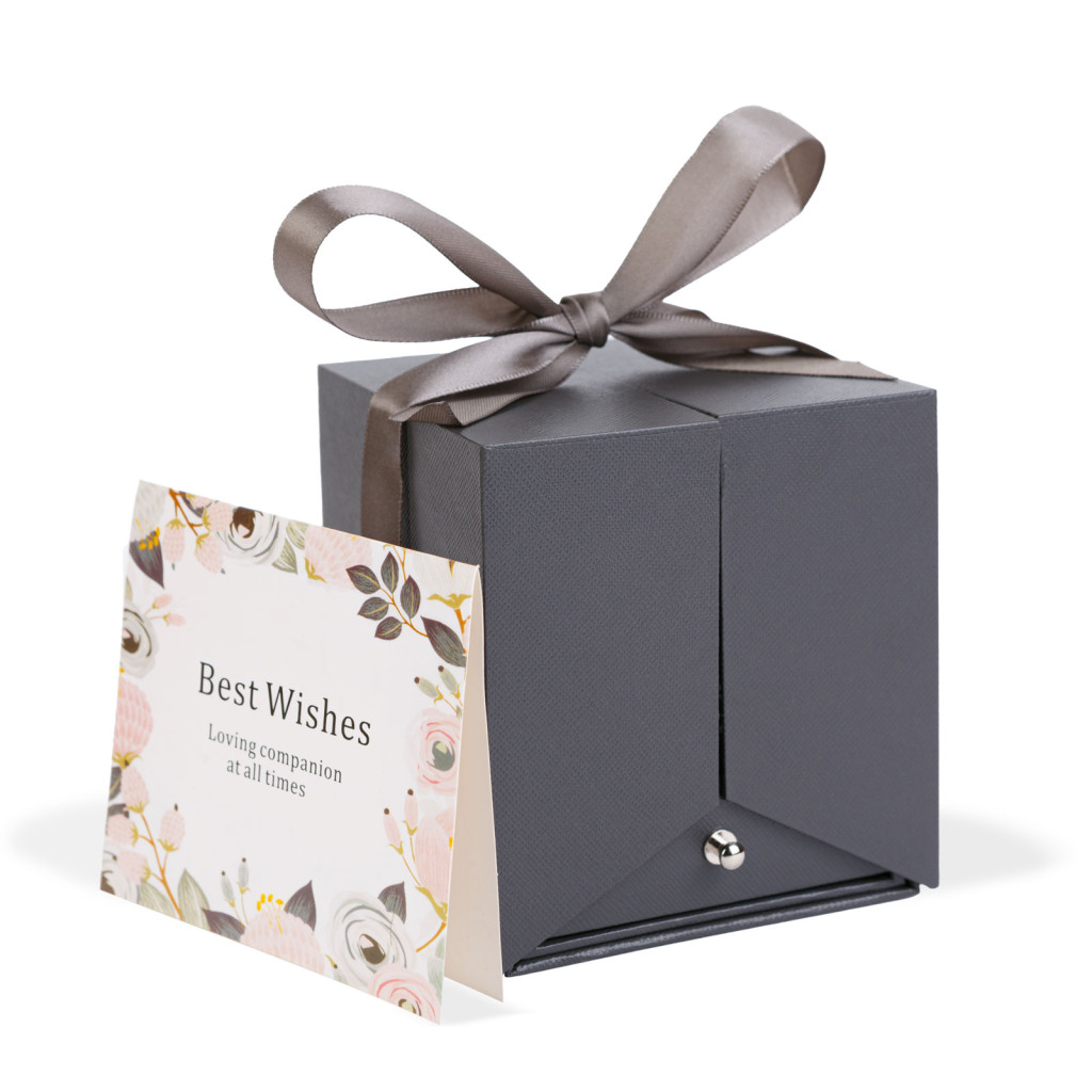 Ez az elegáns ajándékszett tökéletes választás különleges alkalmakra, például évfordulókra, születésnapokra, Valentin-napra, vagy karácsonyra. A csomag tartalmaz 1 db nagyméretű örökrózsa virágfejet és egy nyakláncot medállal. A „Best Wishes” jókívánság a fedelén egyedi üzenettel egészíti ki ezt az ajándékot. Az alsó rész praktikus tárolóként is használható. Ajándékozzon maradandó emléket, amely mindig mosolyt csal az ajándékozott arcára!