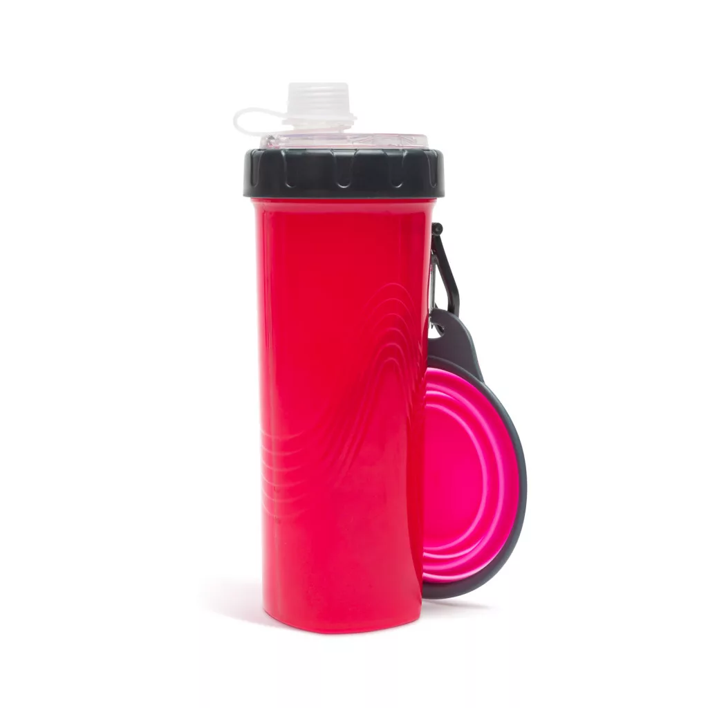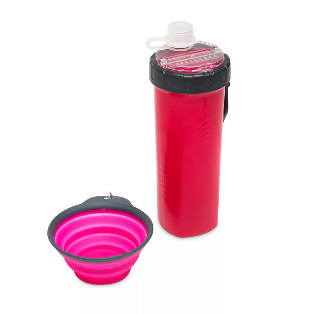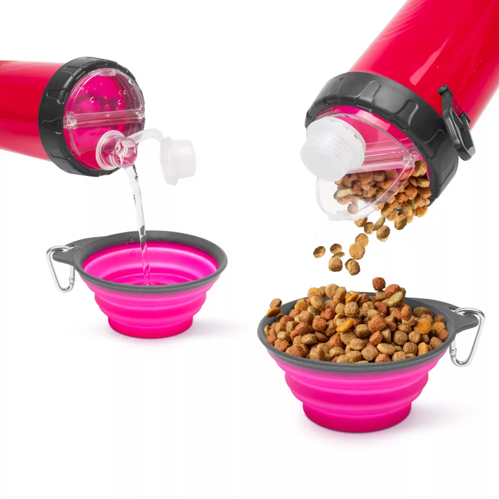 Összenyomható kutyatál kulaccsal - rózsaszín