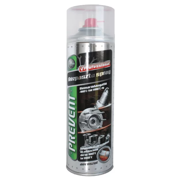 Extrém hőmérsékletnek és nyomásnak kitett alkatrészek nagy teljesítményű kenőanyaga (-180°C-tól 1100°C-ig). A termék a rögzített, illetve a lassú mozgást végző alkatrészek kenéséhez ajánlott, finomszemcséjű alumínium-, réz- és grafitport tartalmaz. Megakadályozza az alkatrészek sérülését, bemaródását, korrózióját és megkönnyíti szétszerelésüket. Csökkenti a nagy nyomás okozta kopást. A kenőanyag ajánlott alkalmazási területe: egyenletes feszültség-eloszlást igénylő kötések, gyújtógyertya-menetek, kipufogó leömlőcsövek, motorcsavarok, fékpofacsapszegek, U-kengyelek, rugós rögzítőcsavarok, csuklós illesztések, fogaskerekek, láncok, lánckerekek, görgők. A PREVENT Professional termékeket szakemberek, mesteremberek számára fejlesztettük ki. Az 500 ml-es kiszerelési méret tartós, gazdaságos használatot tesz lehetővé. A speciális szelep/szórófej rendszernek és a kupakban mellékelt szórócsőnek köszönhetően megválaszthatjuk, hogy gyorsan, nagy kihozatallal, vagy gazdaságosan, egy pontra irányítottan alkalmazzuk a hatóanyagot.