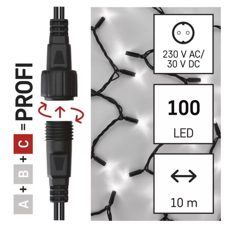 a fa magasságához: nincs megadva|anyag: gumi|bemeneti feszültség: 30 V DC|csatlakoztatási lehetőség: igen|élettartam: 10 000 óra|értékesítési csomagolás: 1 db, doboz|fény színe: hideg fehér|fogyasztás: max. 6 W|forma: klasszikus|funkció: világít|garancia-időszak: 3 év|használat: kültéri és beltéri|időzítő: nincs megadva|kábel színe: fekete|kimeneti feszültség: nincs megadva|LED-ek közötti távolság: 10 cm|LED-ek száma: 100|LED mérete: 7 mm|méretek: 10 m|tápellátás típusa: AC (hálózati) adapter (nem a csomag része)|tápvezeték hossza: 10 cm|távvezérlő: nem|termék: lánc|védettség: IP44