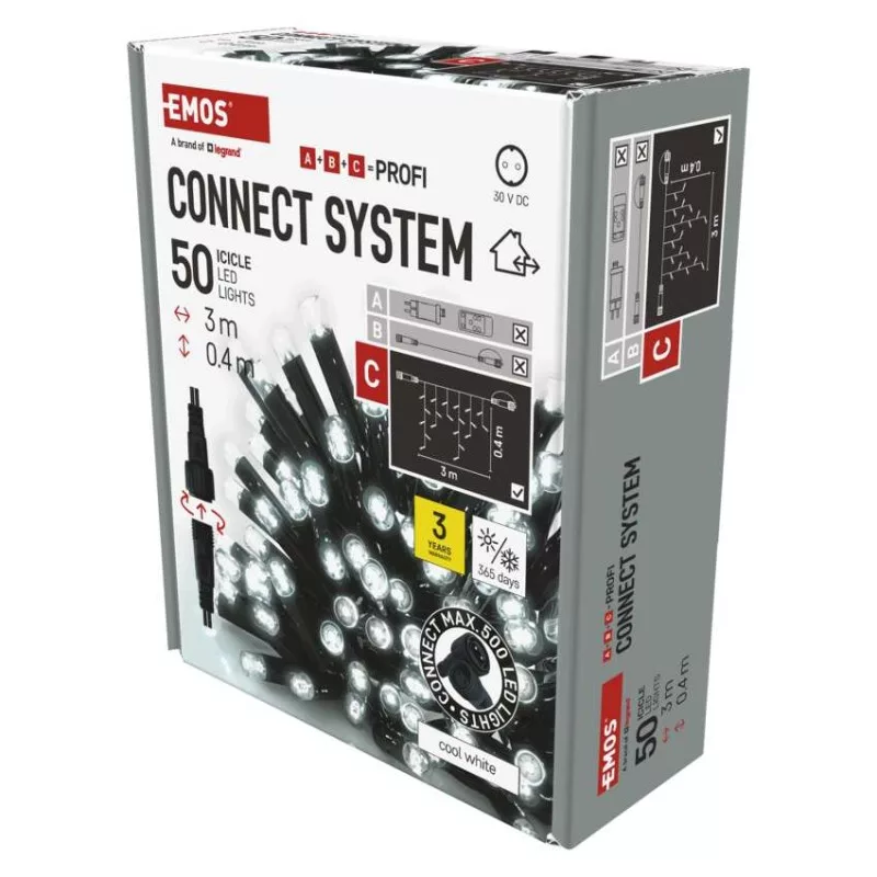 a fa magasságához: nincs megadva|anyag: gumi|bemeneti feszültség: 30 V DC|csatlakoztatási lehetőség: igen|élettartam: 10 000 óra|értékesítési csomagolás: 1 db, doboz|fény színe: hideg fehér|fogyasztás: max. 4 W|forma: klasszikus|funkció: világít|garancia-időszak: 3 év|használat: kültéri és beltéri|időzítő: nincs megadva|kábel színe: fekete|kimeneti feszültség: nincs megadva|LED-ek közötti távolság: 10 cm|LED-ek száma: 50|LED mérete: 7 mm|méretek: 3 × 0,4 m|tápellátás típusa: AC (hálózati) adapter (nem a csomag része)|tápvezeték hossza: 10 cm|távvezérlő: nem|termék: jégcsap|védettség: IP44