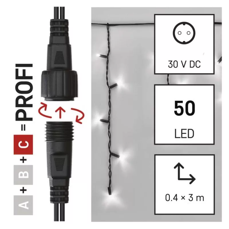 Profi LED sorolható füzér, fekete – jégcsapok, 3 m, kültéri, hideg fehér