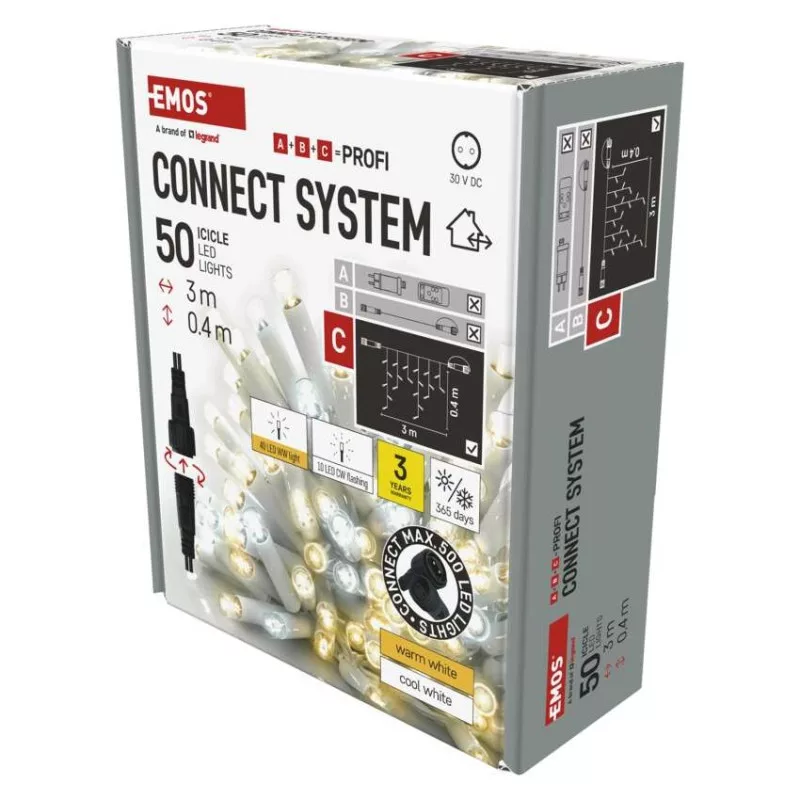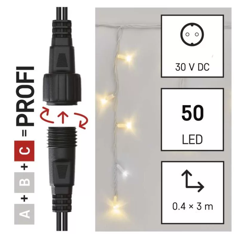 a fa magasságához: nincs megadva|anyag: gumi|bemeneti feszültség: 30 V DC|csatlakoztatási lehetőség: igen|élettartam: 10 000 óra|értékesítési csomagolás: 1 db, doboz|fény színe: meleg/hideg fehér|fogyasztás: max. 4 W|forma: klasszikus|funkció: világít/villog|garancia-időszak: 3 év|használat: kültéri és beltéri|időzítő: nincs megadva|kábel színe: fehér|kimeneti feszültség: nincs megadva|LED-ek közötti távolság: 10 cm|LED-ek száma: 50|LED mérete: 7 mm|méretek: 3 × 0,4 m|tápellátás típusa: AC (hálózati) adapter (nem a csomag része)|tápvezeték hossza: 10 cm|távvezérlő: nem|termék: jégcsap|védettség: IP44