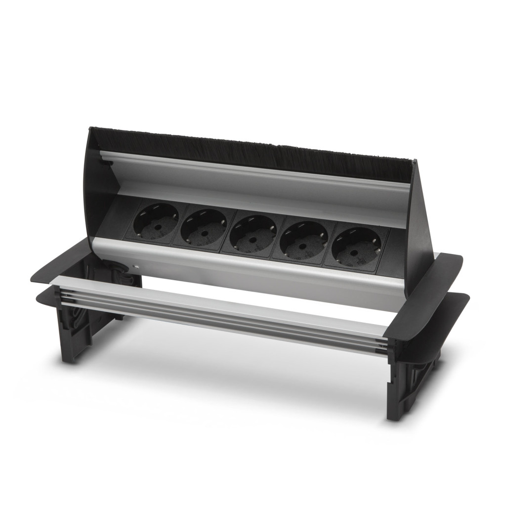Süllyeszthető elosztó irodai és otthoni felhasználásra, fém házzal, 5 db gyermekvédelemmel ellátott aljzattal. Asztala, bútora legyen mindig elegáns és rendezett, mégis funkcionális. A rejtett elosztó kiváló megoldás lehet ha már például kész konyhával rendelkezik, de nincs elegendő konnektor a kívánt helyen. Ilyenkor falvésés és villamos hálózat bővítés nélkül, remek alternatíva lehet egy rejtett elosztó. Egy mozdulat és máris rendelkezésre áll 5 szabad konnektor. Ideális lehet olyan elektromos eszközökhöz, amit nem folyamatosan használunk, kenyérpirító, vízforraló... Ha használaton kívül vannak, az elosztó egy mozdulattal elrejthető, ezzel is megkönnyítve például a takarítást, valamint rendezett, letisztult külsőt ad a helységnek.