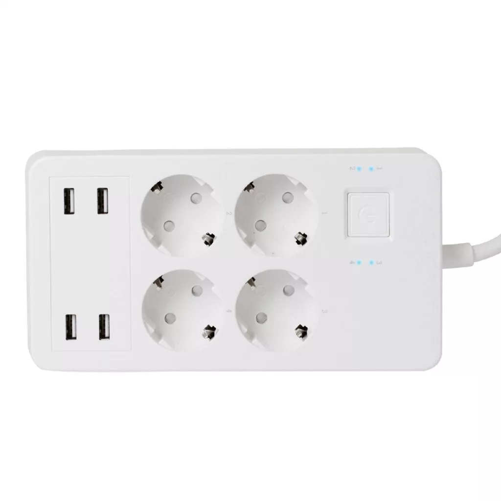 Home NV 4 WIFI smart elosztó, 1,5 m, H05VV-F 3G1,5 mm2 kábel, 4 földelt aljzat, 4 USB aljzat, max.3680W, Tuya alkalmazás kompatibilis, WiFi-s