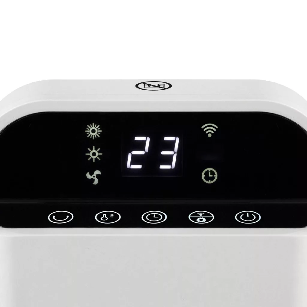 Ez az elegáns, fehér színű készülék két fűtési fokozattal rendelkezik: 1000 W és 2000 W, így könnyedén szabályozhatja a hőmérsékletet az igényeinek megfelelően. A készülék álló elhelyezésű, kompakt méretének (23 x 56 x 15 cm) és könnyű súlyának (2 kg) köszönhetően bárhol elhelyezhető a lakásban. Ezt a modern készüléket az okostelefonos alkalmazásnak köszönhetően távolról is működtetheti az otthoni WIFI-s környezetben de távirányítóval is vezérelhető, és rendelkezik 12 órás kikapcsolásidőzítéssel, ami lehetővé teszi, hogy előre beállítsa a fűtés időtartamát, növelve a kényelmet és az energiatakarékosságot. A készülék 15-45 °C közötti hőmérséklet-tartományban állítható be, így mindig az Ön igényeinek megfelelő meleget biztosítja.