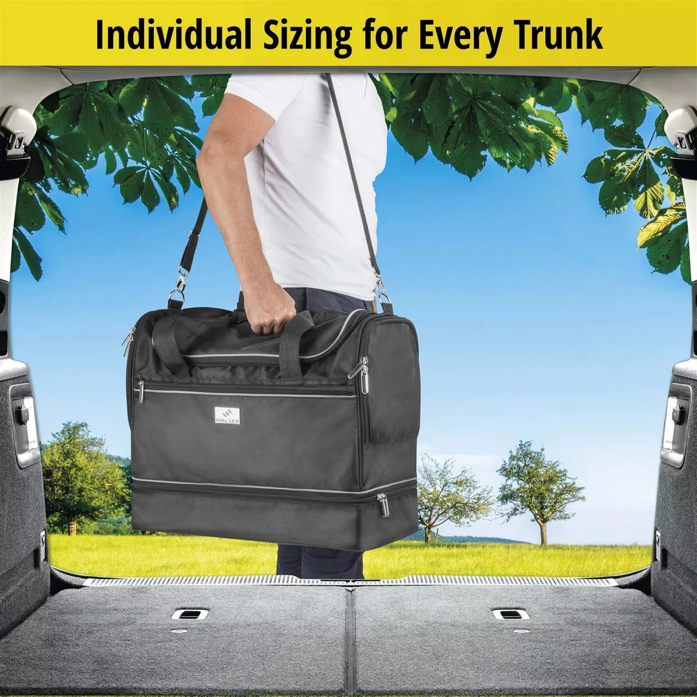A praktikus sporttáska erős, vízlepergető anyagból készült, amely könnyen tisztítható. Ezen kívül három cipzáras rekesz található a külső oldalon, hogy kéznél tartsa dokumentumait és egyéb fontos tárgyait. Két hordozó fogantyú, állítható vállpánt és fényvisszaverő dekoratív varrások teszik teljessé a sporttáska jellemzőit, hogy tökéletes és biztonságos megoldást nyújtsanak utazásaihoz. A táska használható külön-külön vagy a Carbags termékcsalád más termékeivel kombinálva az autó csomagtartójához szabott készletként.