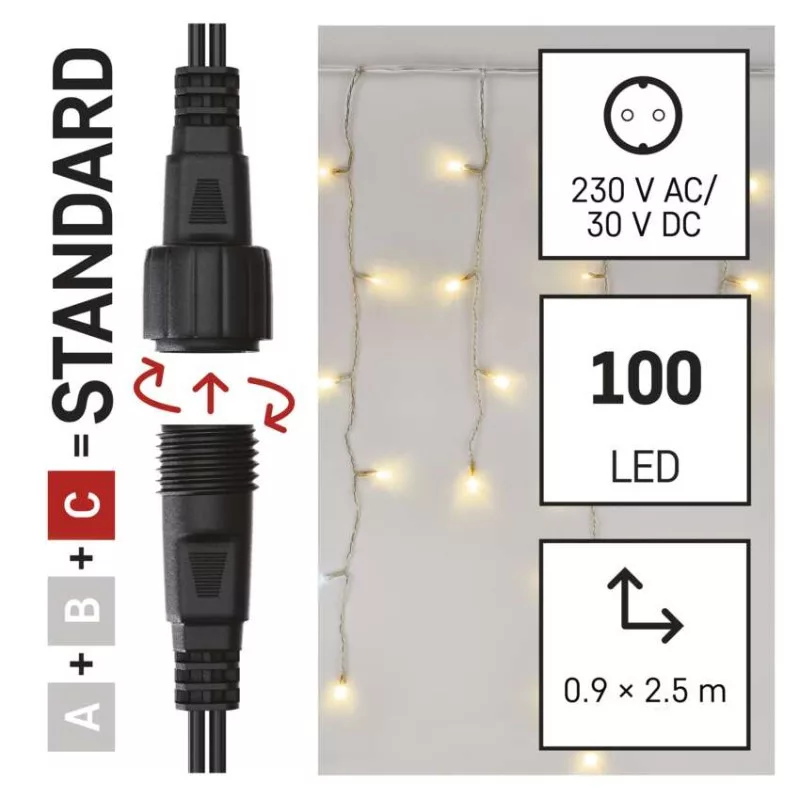 a fa magasságához: nincs megadva|anyag: PVC|bemeneti feszültség: 30 V DC|csatlakoztatási lehetőség: igen|élettartam: 10 000 óra|értékesítési csomagolás: 1 db, doboz|fény színe: meleg/hideg fehér|fogyasztás: max. 5 W|forma: klasszikus|funkció: világít/villog|garancia-időszak: 2 év|használat: kültéri és beltéri|időzítő: nincs megadva|kábel színe: átlátszó|kimeneti feszültség: nincs megadva|LED-ek közötti távolság: 10 cm|LED-ek száma: 100|LED mérete: 5 mm|méretek: 2,5 × 0,9 m|tápellátás típusa: AC (hálózati) adapter (nem a csomag része)|tápvezeték hossza: 10 cm|távvezérlő: nem|termék: jégcsap|védettség: IP44