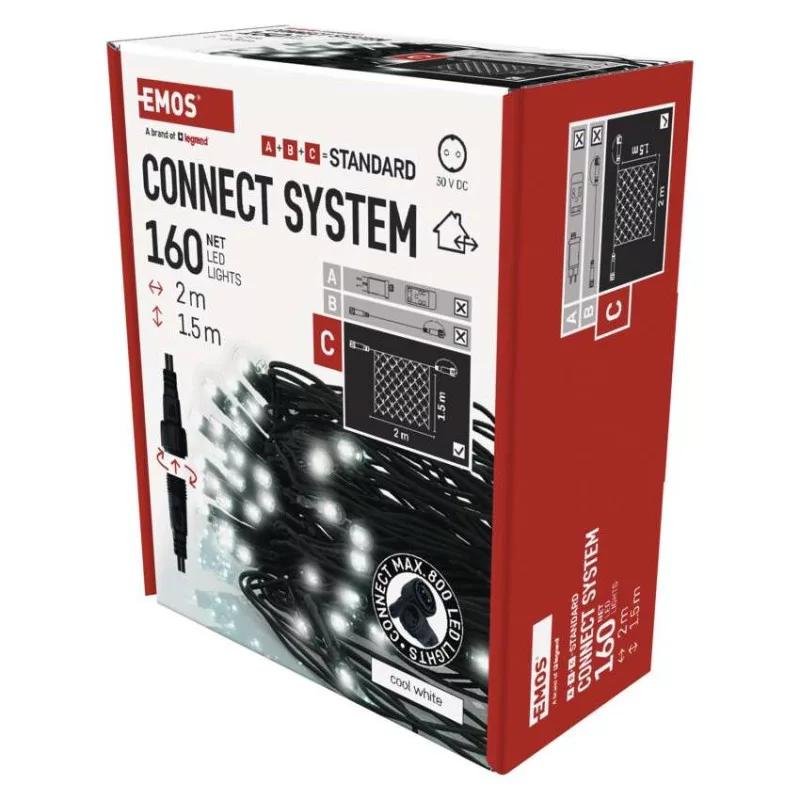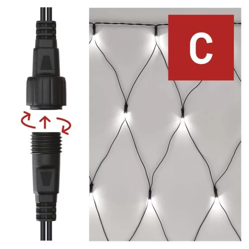 Standard LED sorolható karácsonyi füzér – háló, 1,5x2 m, kültéri, hideg fehér