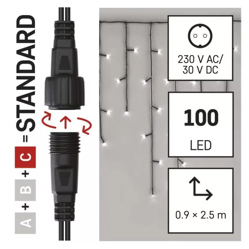 Standard LED sorolható karácsonyi füzér – jégcsapok, 2,5 m, kültéri, hideg fehér