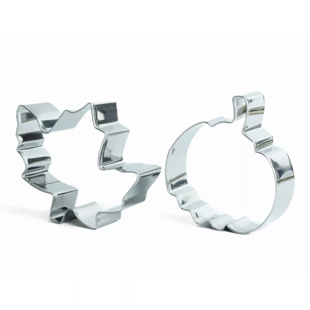 Készítsen tökéletes őszi hangulatú süteményeket ezzel a praktikus sütikiszúró szettel! A juharlevél és tök formájú, fém kiszúrók tökéletes választások őszi és halloween-i sütemények, mézeskalácsok vagy akár fondant készítéséhez. A rozsdamentes fémből készült formák éles vágóéle biztosítja a precíz formázást, míg a sima perem kényelmes fogást nyújt. Tartós és könnyen tisztítható, így hosszú távon is praktikus kiegészítője lesz konyhájának.