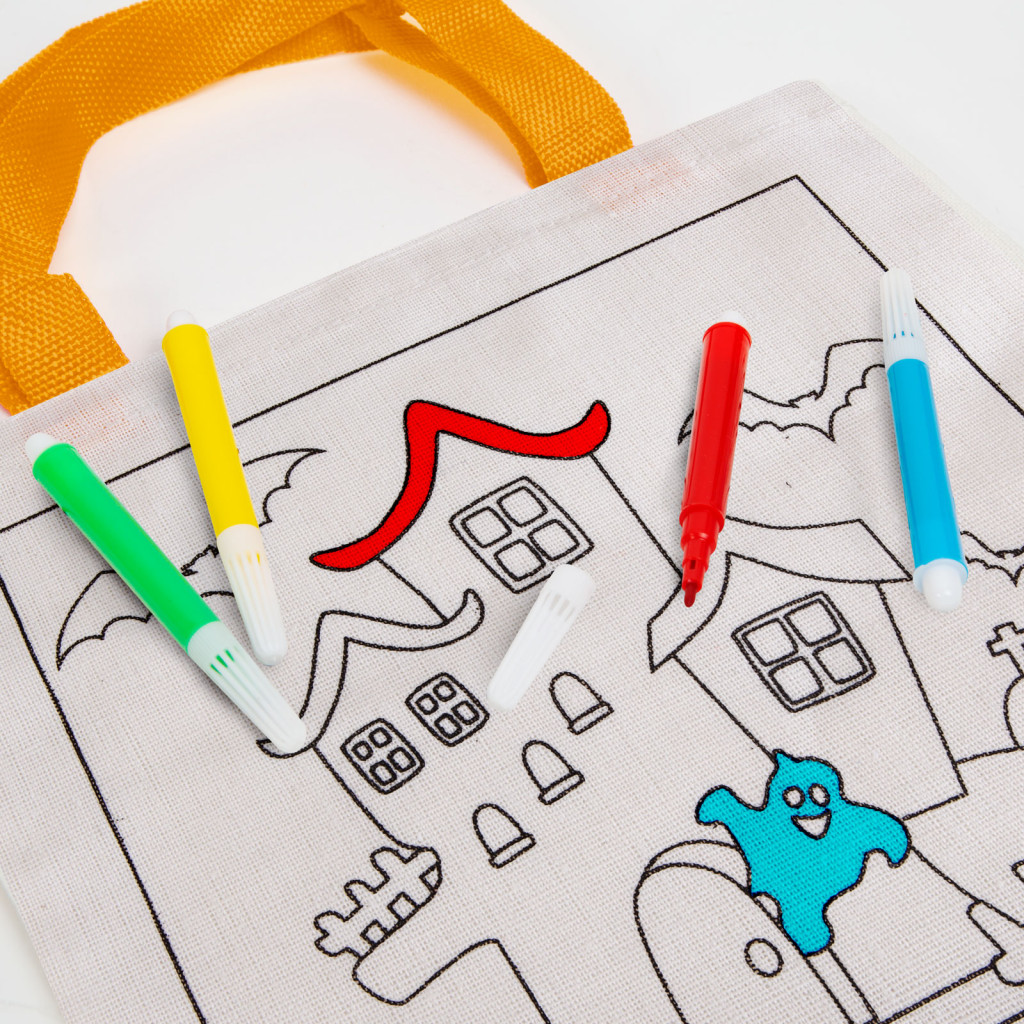 Színezd magad szatyor színes filctoll készlettel. Kettő az egyben: táska és foglalkoztató gyerekeknek. Színezéskor a táska két anyaga közé vastagabb papírt kell tenni, hogy a hátoldalra ne kerüljön festék.