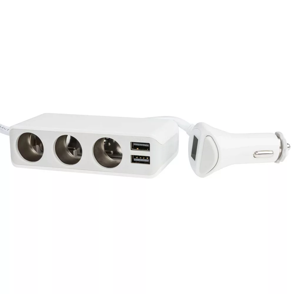 Szivargyújtó elosztó 12-24V 3 aljzat, 2xUSB aljzat Smart-IC - WALSER