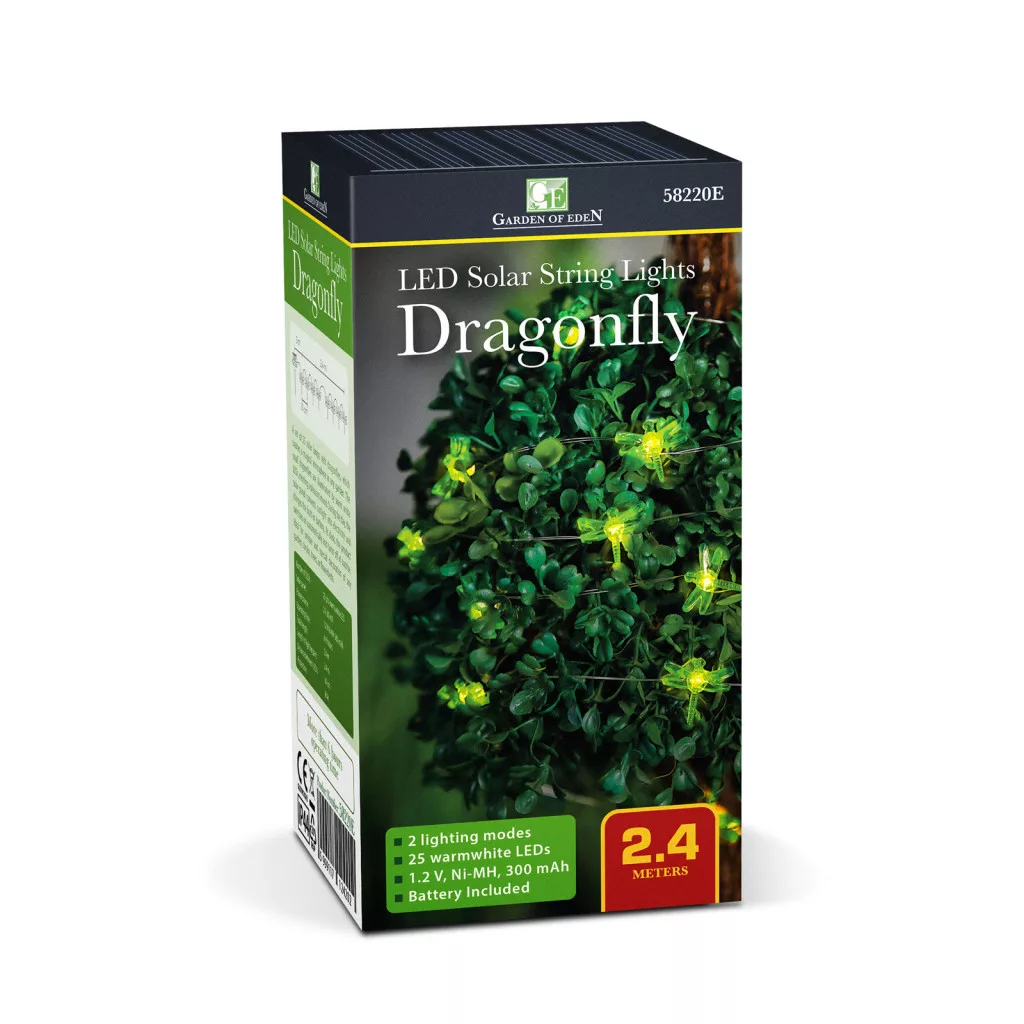 Szolár LED fényfüzér - szitakötő - 2,4 m - 25 LED - melegfehér